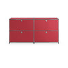 ドロップダウンドアが4つ付いた2連2段のサイドボード。一つの棚の内側は、A4ファイルを縦にしても横にしてもぴったり収納できる高さと奥行で、平置きでは3つ並べて置くことができる幅があります。大容量で、様々なものが収納できます。リビングルームやワークスペースなど幅広い場所で活躍する、使い勝手のいいサイズです。