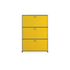 上段と中段にドロップダウンドア、最下段にエクステンションドアが付いた3段のキャビネット。一つの棚の内側は、A4ファイルを縦にしても横にしてもぴったり収納できる高さと奥行で、平置きでは3つ並べて置くことができる幅があります。最上段のドロップダウンドアを開けて、簡易デスクとしてもご使用いただけます。どんな場所でもご使⽤いただける定番ユニットです。