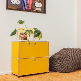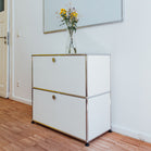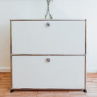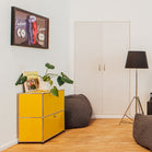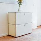 サイドボードとしてリビングやワークスペースで活躍します。A4ファイルが横には3つ分並べておくことができ、縦にも収納することができます。