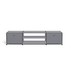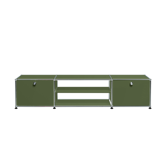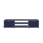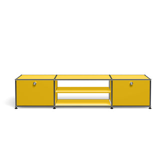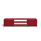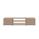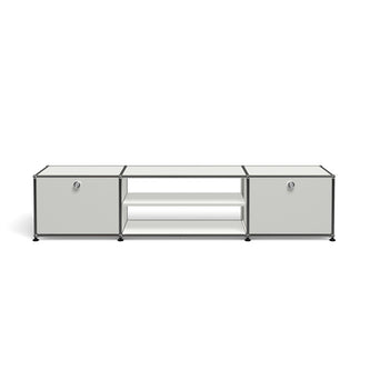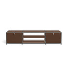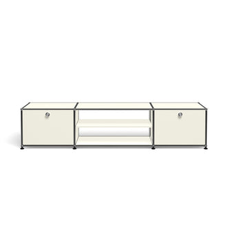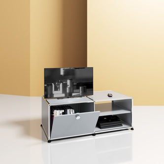 2つのドロップダウンドアにAV機器用のディバイダーシェルフが付いたテレビボードです。定番の使いやすい仕様です。