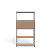 ドロップダウンドアを開くと、簡易デスクとしてご使用頂ける便利なキャビネットです。ドア以外の箇所はサイド・バックパネル抜きの仕様のため、圧迫感が軽減されています。